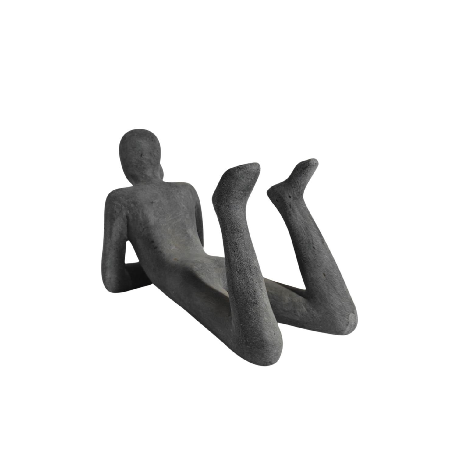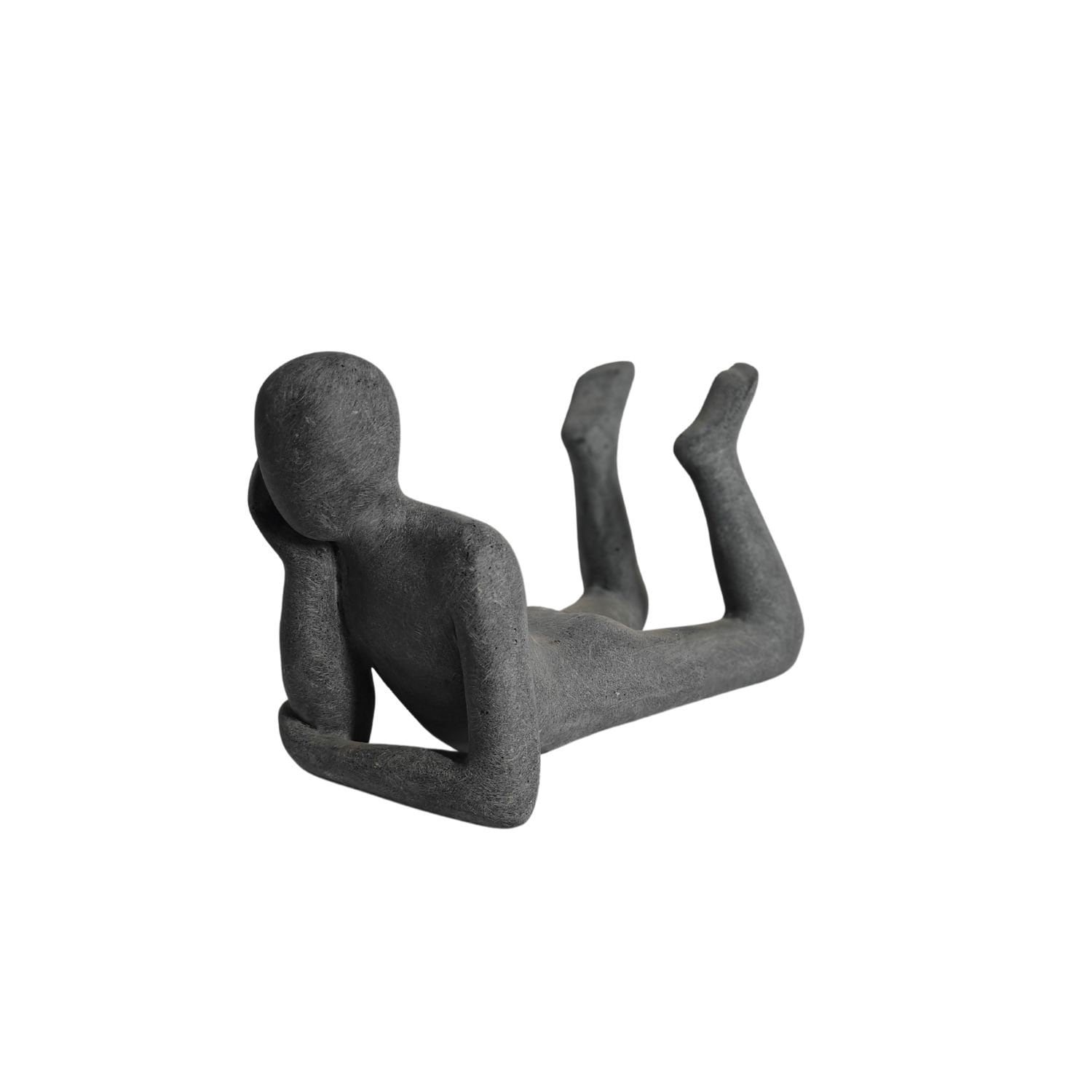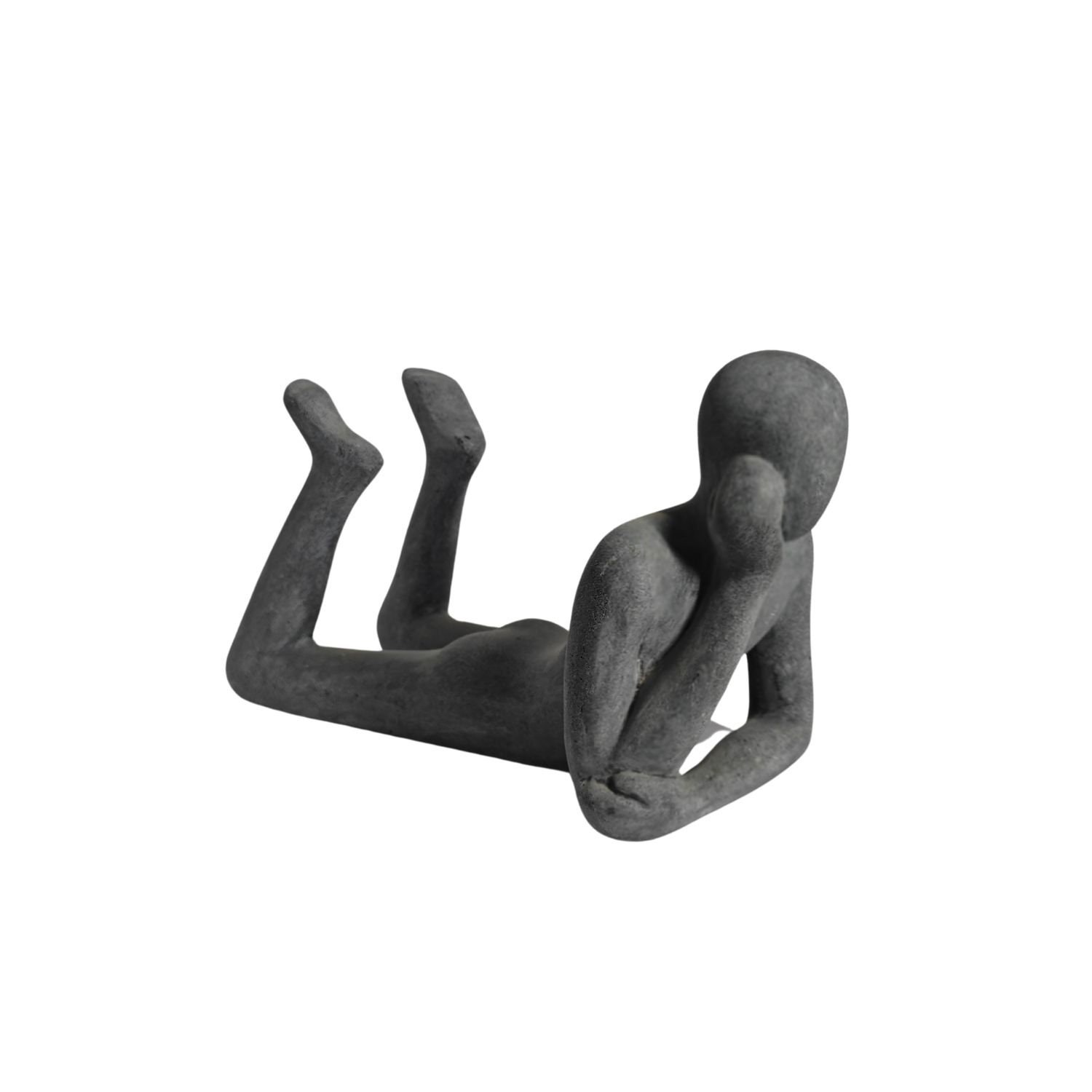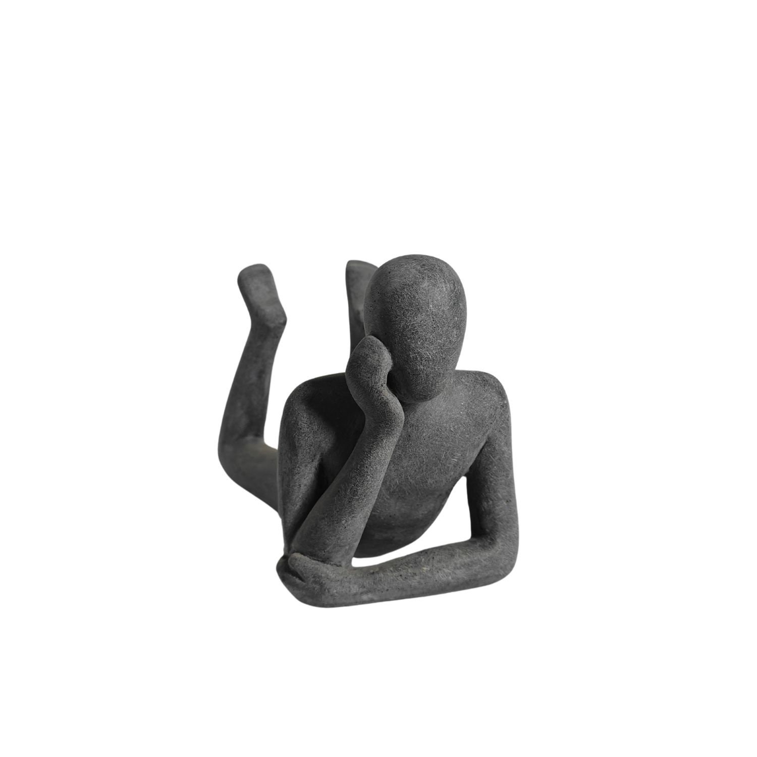 This sculpture depicts a reclining man, crafted from a high-quality resin composite. The fine details and realistic rendering make this sculpture an impressive work of art. The man exudes peace and serenity, lending a harmonious atmosphere to any room. The sculpture is perfect as a decorative element for living rooms, offices, or reception areas. It also makes a wonderful gift for art lovers and those who appreciate aesthetics. With its elegant presence, this sculpture is sure to attract attention and become a focal point in any room. The dimensions are as follows: