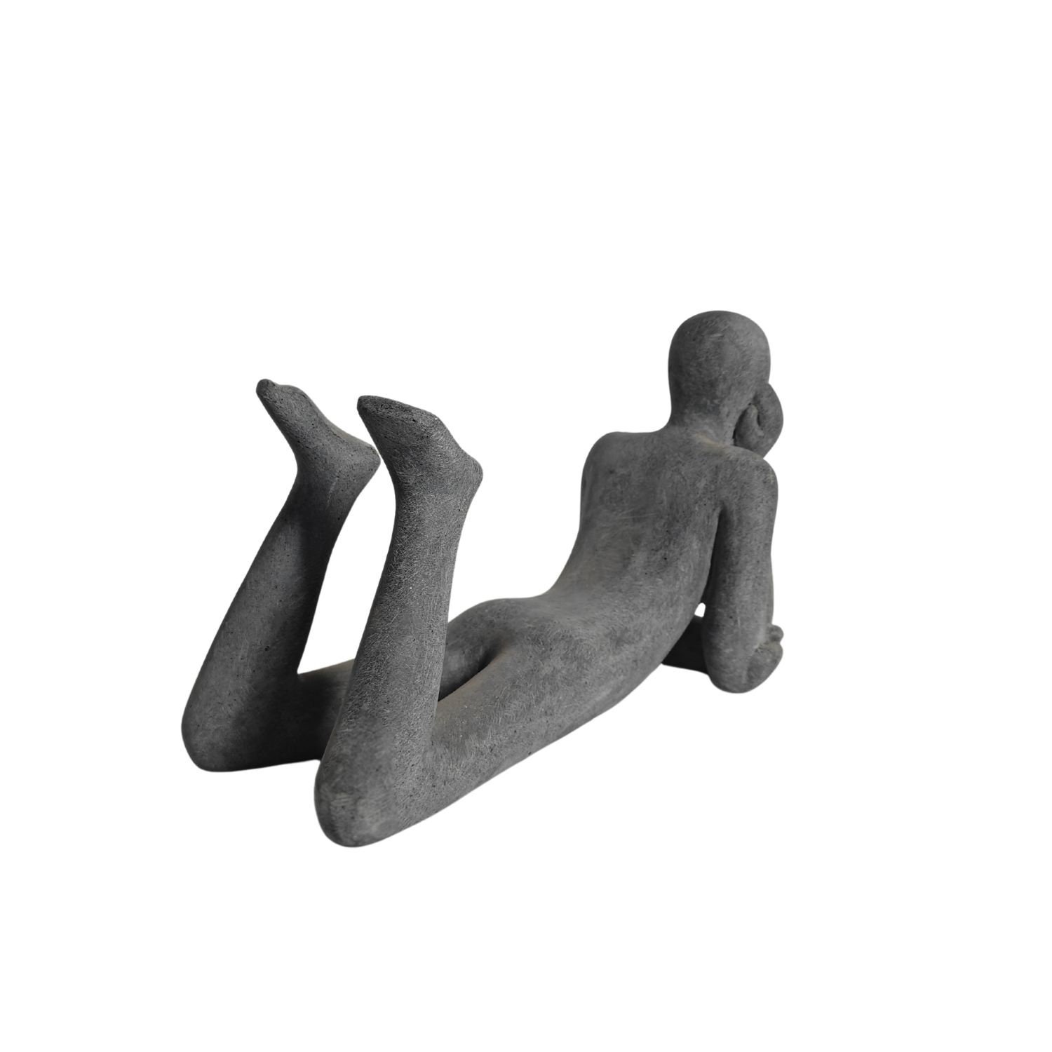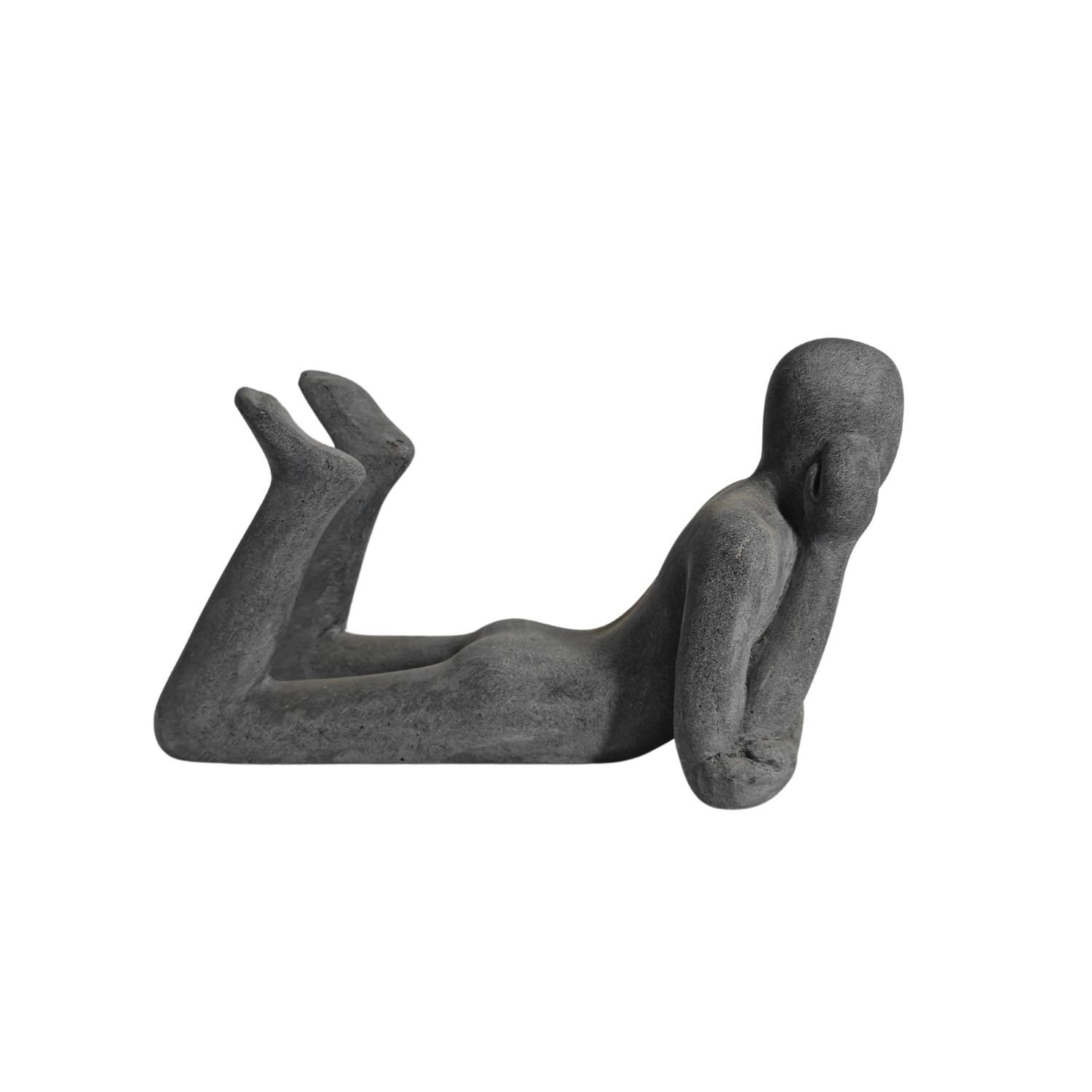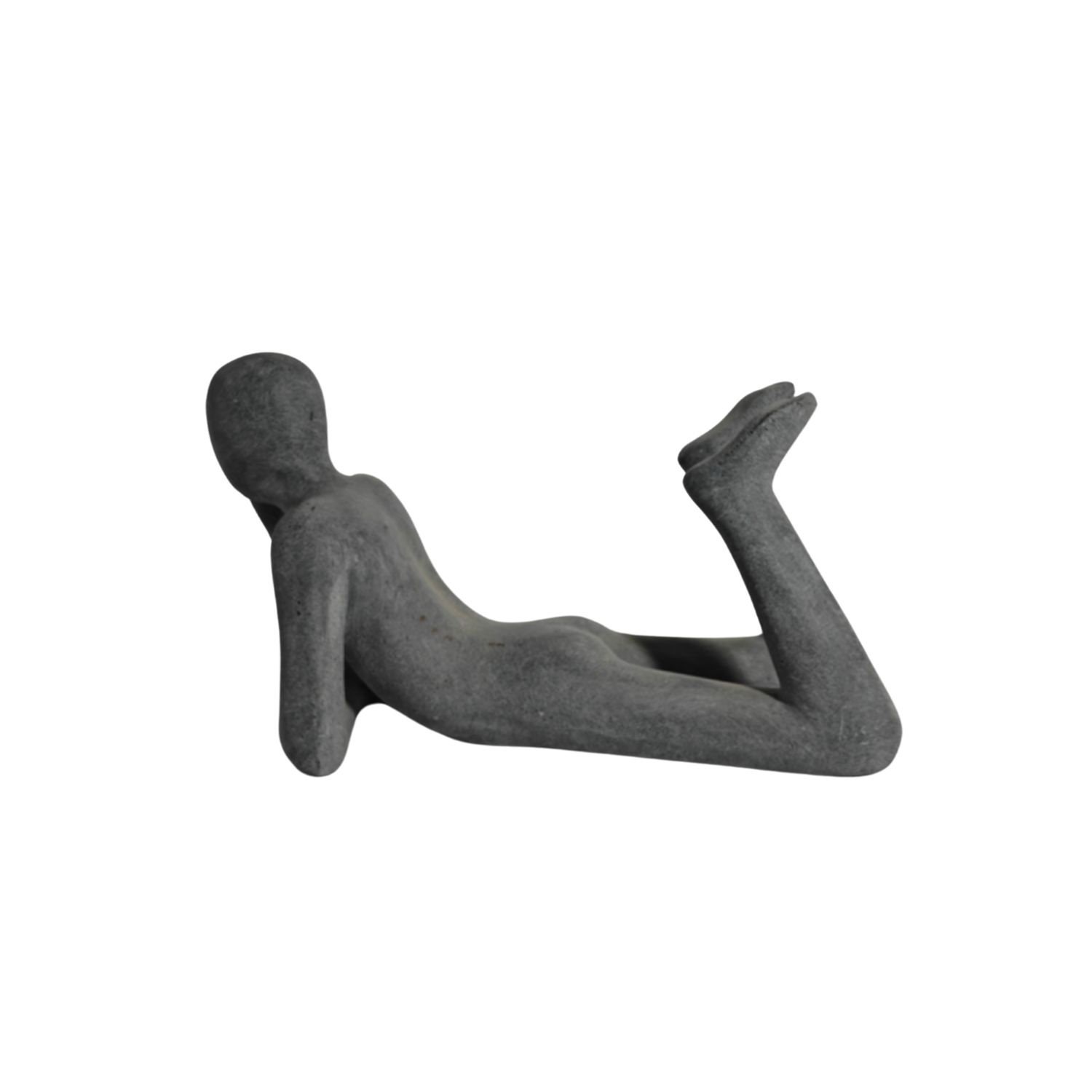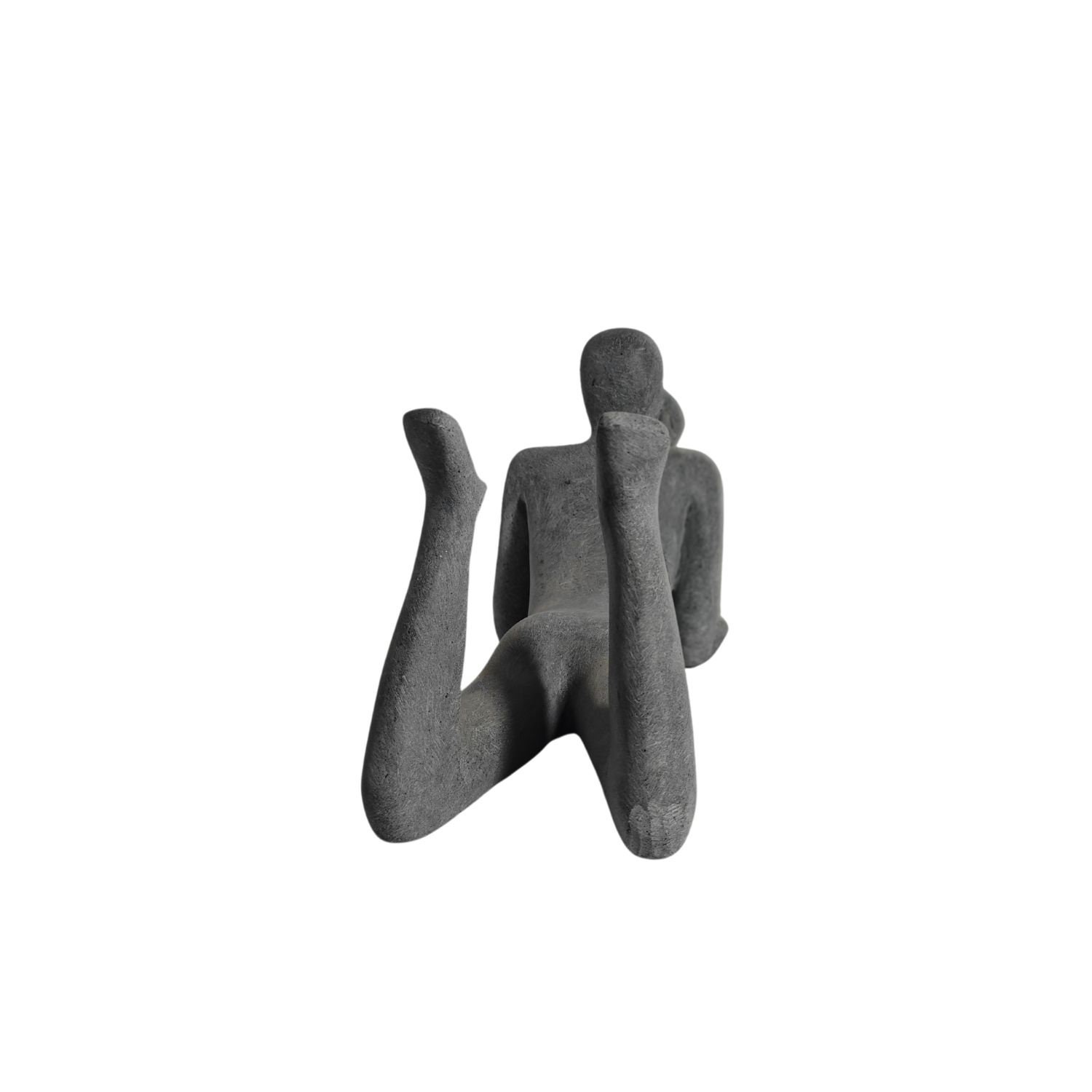 This sculpture depicts a reclining man, crafted from a high-quality resin composite. The fine details and realistic rendering make this sculpture an impressive work of art. The man exudes peace and serenity, lending a harmonious atmosphere to any room. The sculpture is perfect as a decorative element for living rooms, offices, or reception areas. It also makes a wonderful gift for art lovers and those who appreciate aesthetics. With its elegant presence, this sculpture is sure to attract attention and become a focal point in any room. The dimensions are as follows: