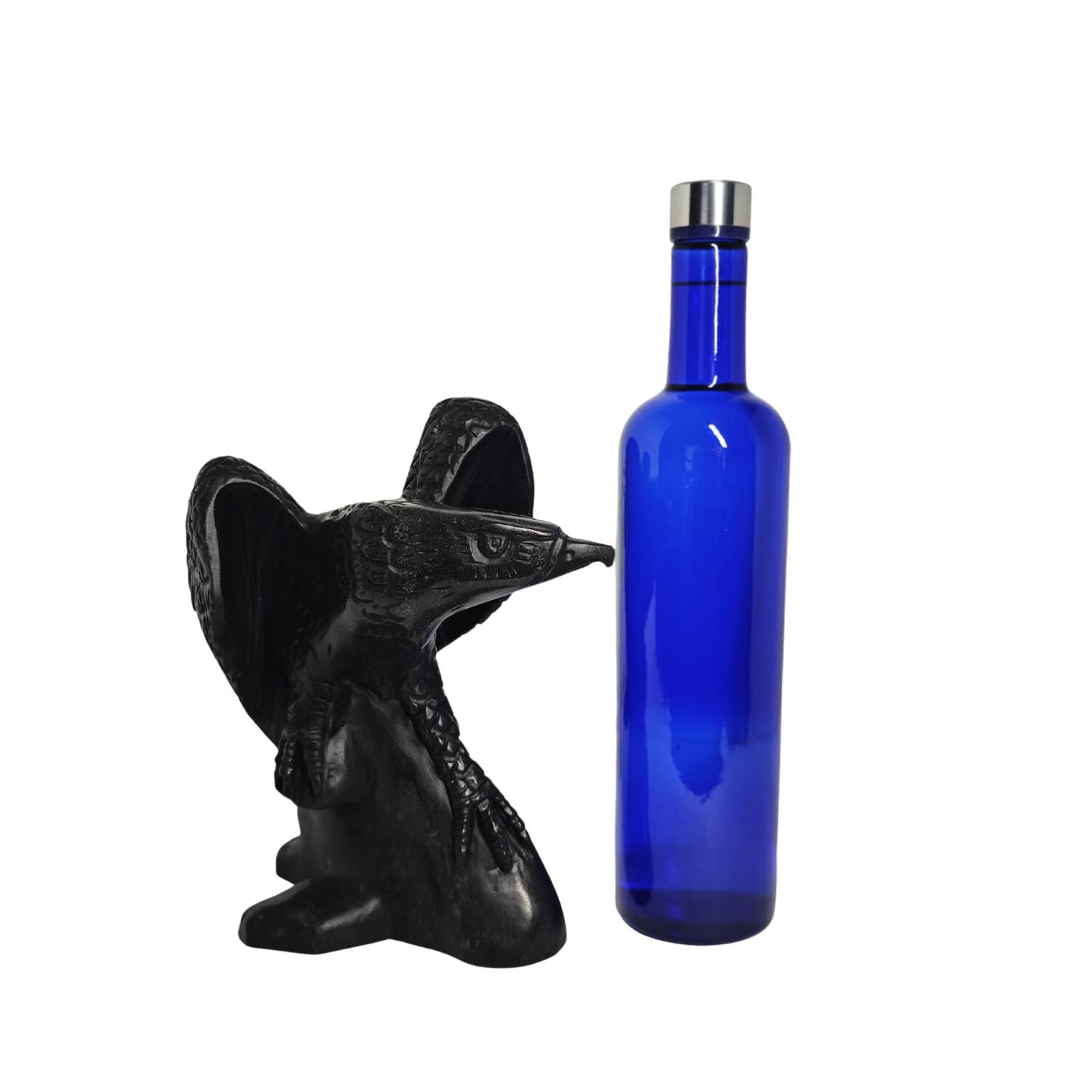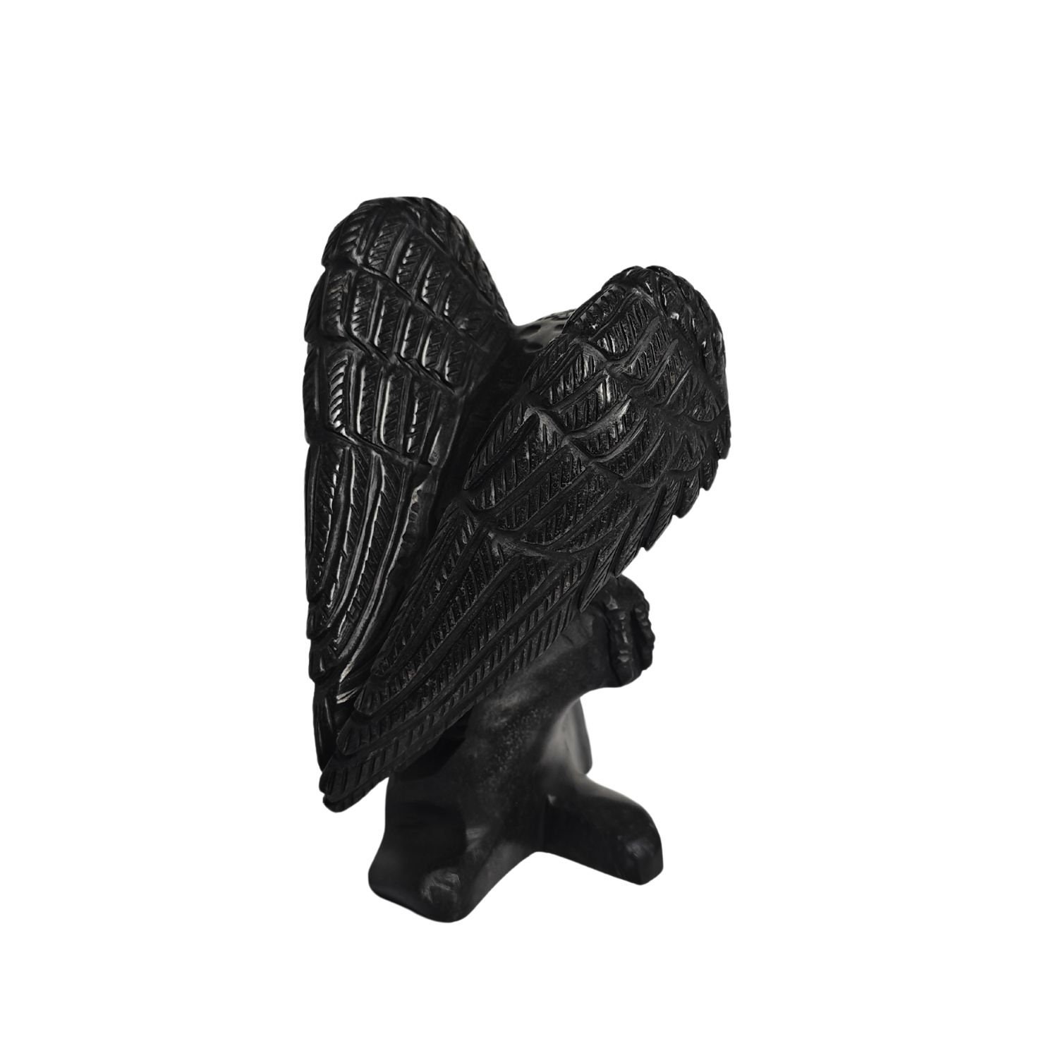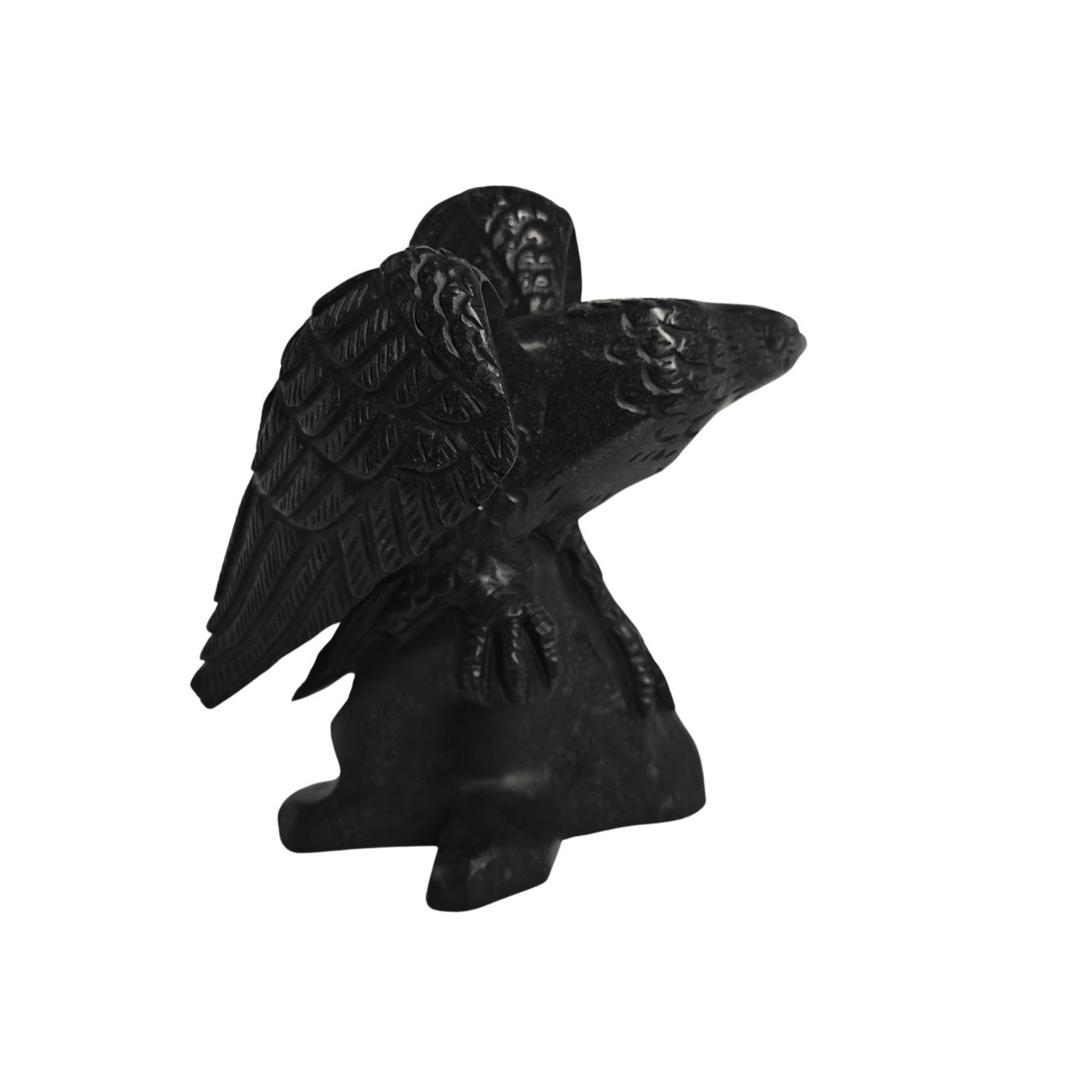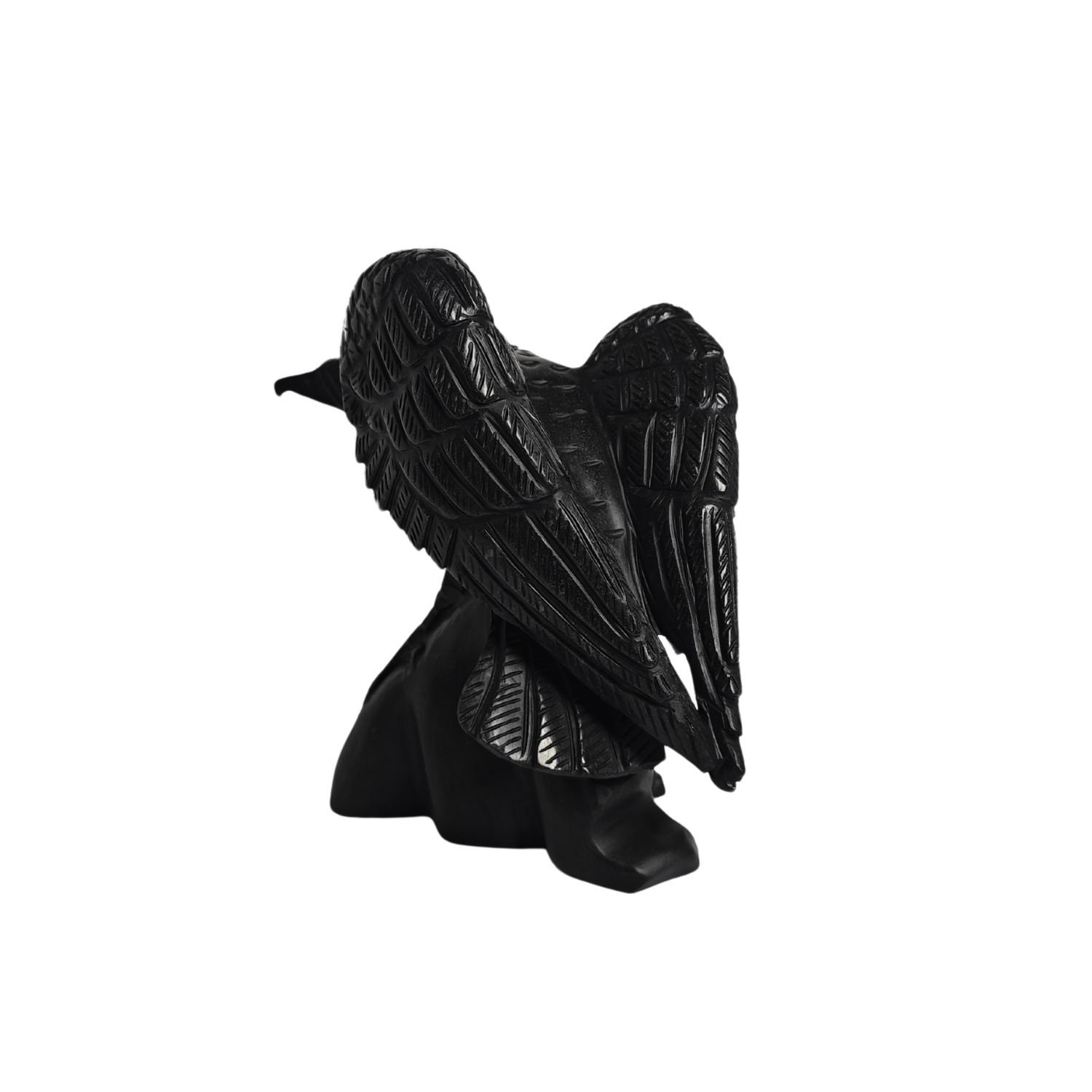 Figurine of a bird of prey/eagle perched on a stone. The figurine was handcrafted from black natural stone and is highly detailed. The dimensions are as follows: