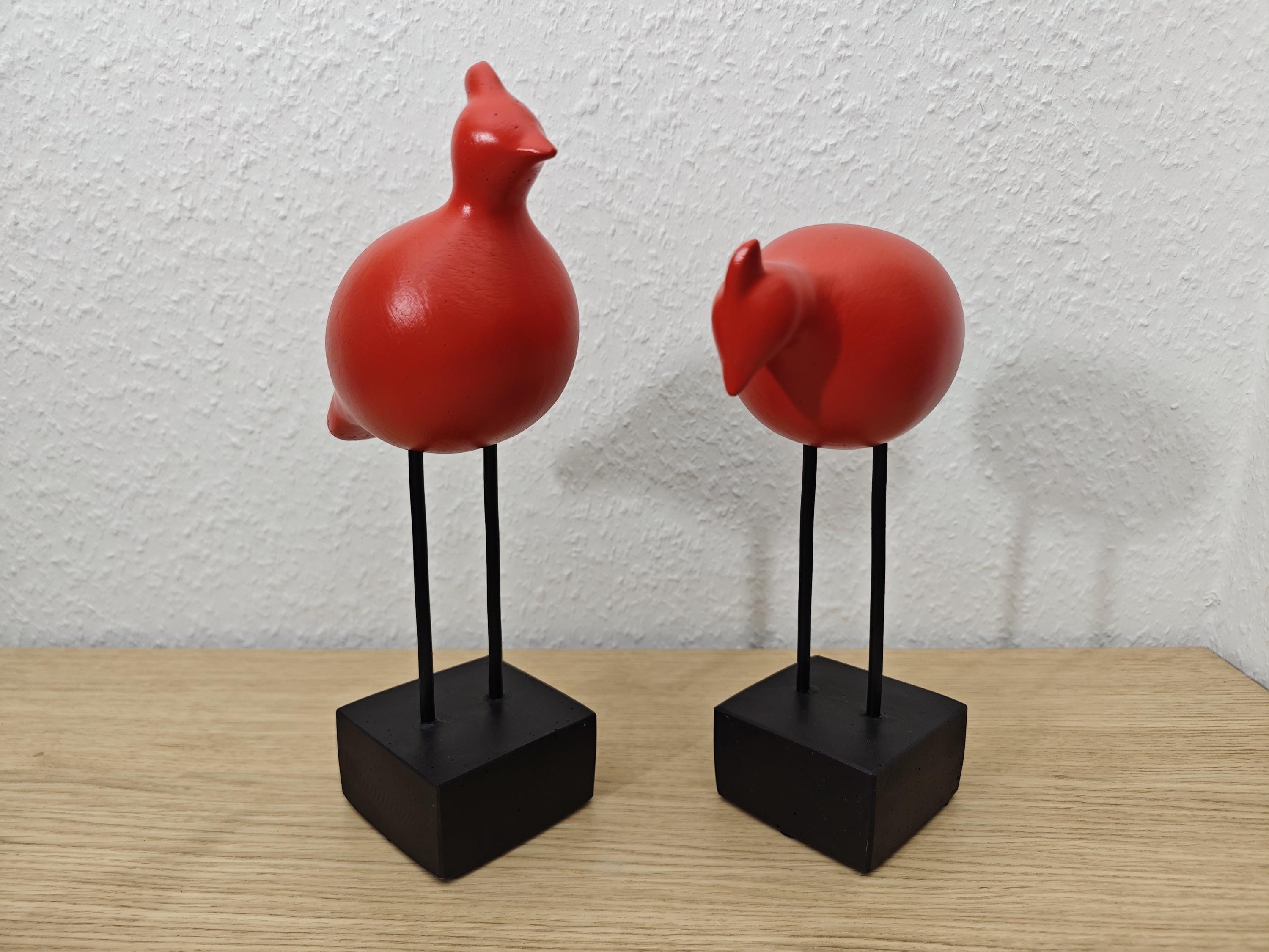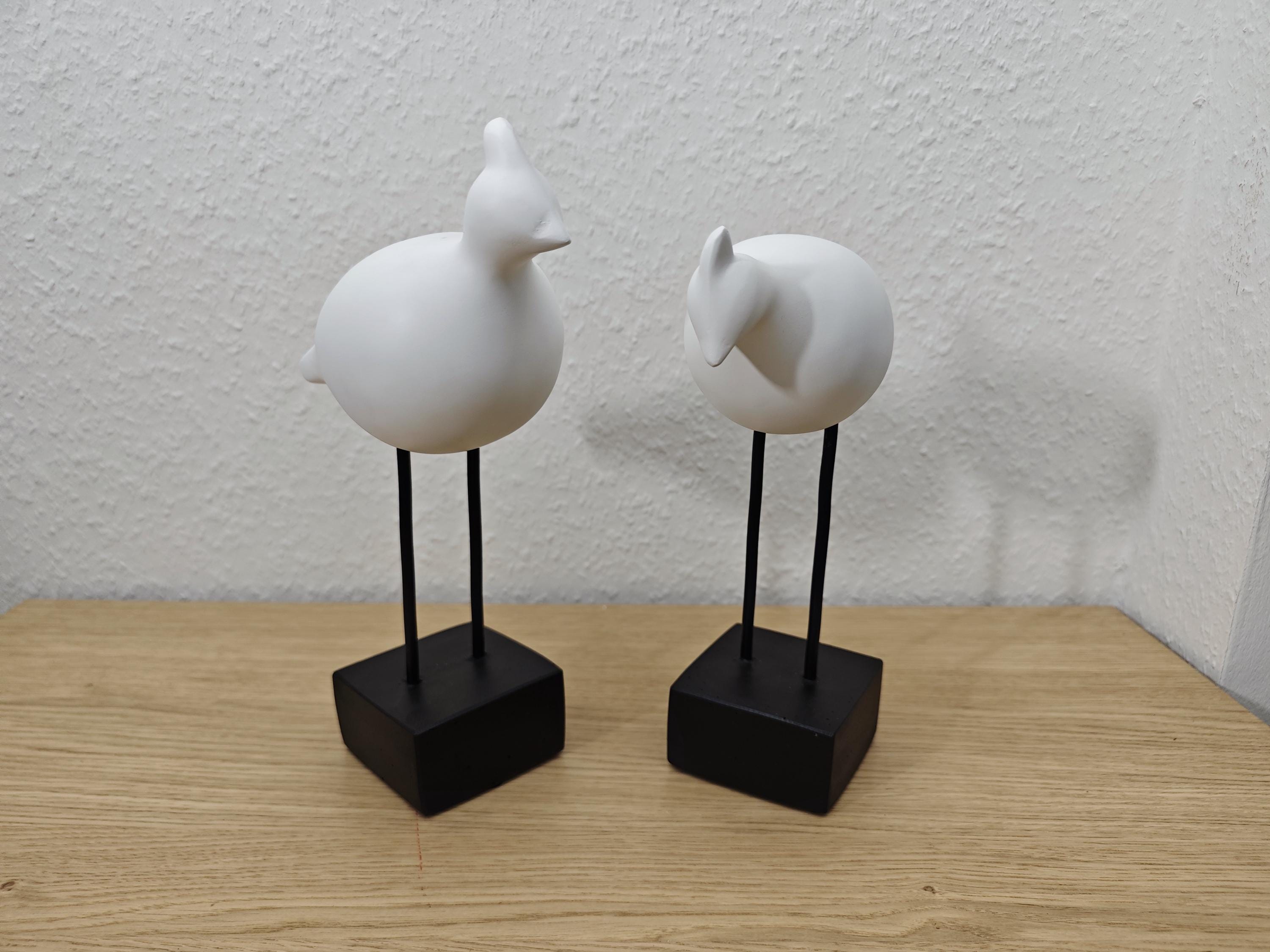 Dies sind Skulpturen zweier Hühner mit unterschiedlichen Körperhaltungen, die aus einem hochwertigem Kunstharz/Beton Gemisch gefertigt wurden. Die feinen Details und die realistische Darstellung machen diese Skulpturen zu einem beeindruckenden Kunstwerk. Die beiden Figuren verleihen jedem Raum eine harmonische Atmosphäre. Die Skulpturen eignen sich perfekt als dekoratives Element für Wohnzimmer, Büro oder Essbereich. Sie sind zudem ein tolles Geschenk für Kunstliebhaber und Menschen, die Wert auf Ästhetik legen. Mit ihrer eleganten Ausstrahlung werden diese Skulpturen sicherlich alle Blicke auf sich ziehen und zu einem Blickfang in jedem Raum werden. Es sind noch viele Andere Farben möglich, schreiben sie uns gerne an. Die Maße sind wie folgt: